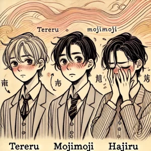 関連語とのつながり:「照れる」「もじもじ」「恥じる」